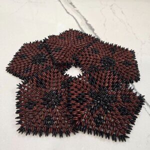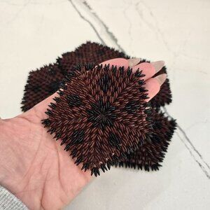 This exquisite set of handcrafted koa seed bead coasters is a true testament to the art of meticulous craftsmanship. Each coaster, adorned with intricately arranged black and brown beads, not only serves as a functional piece to protect surfaces but also adds an elegant touch to any dining or living space. The pattern is both captivating and sophisticated, offering a unique aesthetic that complements various decor styles. Ideal for hosting guests or enjoying a quiet evening with a favorite drink, these coasters embody both beauty and practicality in every detail.