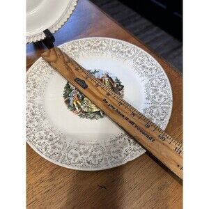 vintage Harker Pottery plate in the "Godey Prints" or "Courting Couple" pattern.