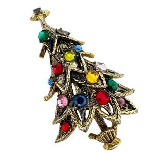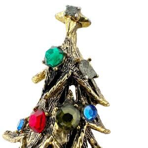 vintage Hollycraft gold & rhinestones Christmas Tree BROOCH holidays jewelry pin