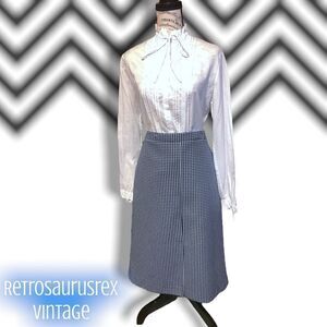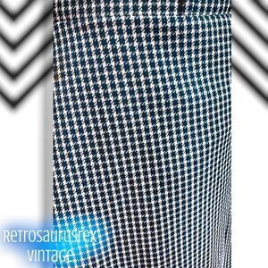Retrosaurusrex Vintage; vtg; twee; pinup; rockabilly; pencil; wiggle; business casual; retro; work attire appropriate; CEO; power suit; stretchy; comfy; comfortable; checkered; check; herringbone; funky; mod; Vintage Rockabilly Twee Houndstooth Elastic Stretch Pencil Skirt, Large