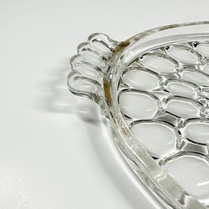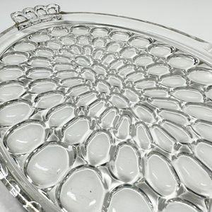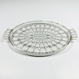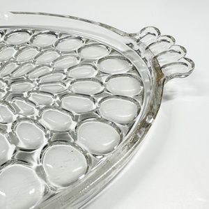 vintage Jeannette 12" Handled glass Tray Thumbprint gold trim platter glassware