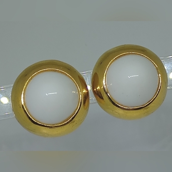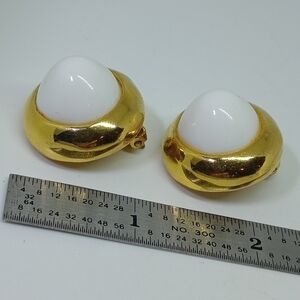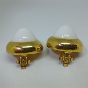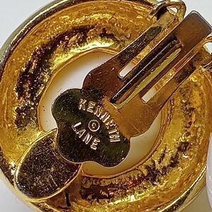 * vintage Kenneth Lane high dome white gold tone clip on earrings
