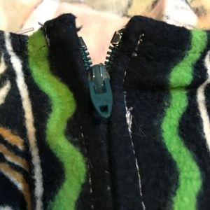 This is seriously one of the coolest dresses I have ever seen. It's handmade and vintage and features a scene from The Last Supper as the bodice. The bodice is darted for a better fit and it zips up the back. It's skater dress/swing dress style with a full skirt. The top feels almost like it was a tapestry - it's a little heavier than the bottom fabric and velvety. One of a kind!