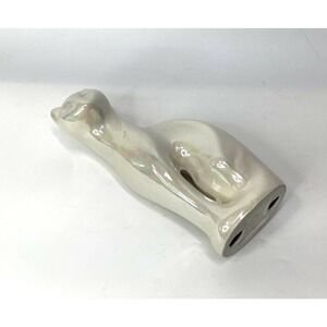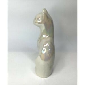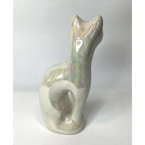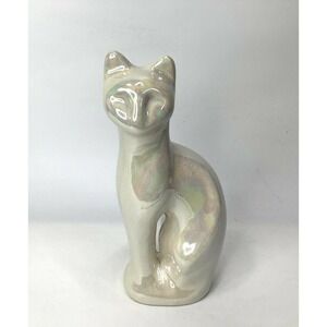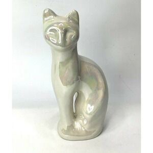 vintage MCM Cat Porcelain Siamese Figurine White Iridescent 8.5" Tall