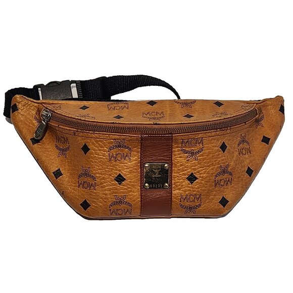 Super cool and rare MCM MUNCHEN Visetos fanny pack in traditional Cognac canvas with leather.