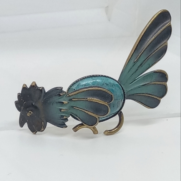 * vintage Made in Germany Blue jelly belly rooster chicken bird pin brooch