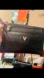 It is a black, medium-sized clutch featuring the brand's iconic 'V' emblem on the front and a zip closure. Made in Italy It has a classic, elegant design and often includes a wristlet strap