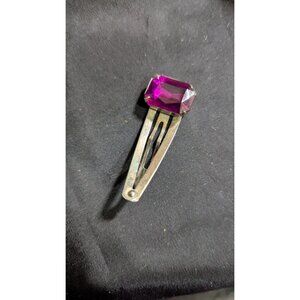 vintage Metal Hair Clip With Large Purple Gemstone Accent Estate Retro