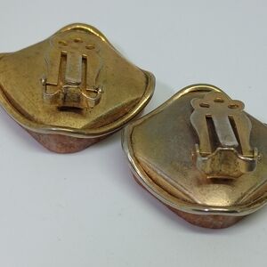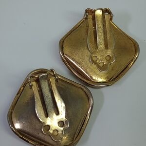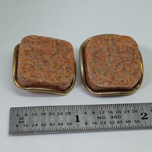* vintage Orange Calcite stone square gold tone clip on earrings