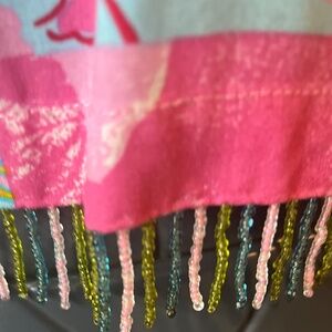 Decorative beaded fringe hem adds movement and charm.