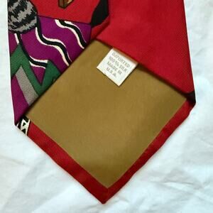 vintage Perry Ellis Handmade 100% silk, made in the USA, tie, red patterned, EUC, length 58", 4" at widest portion of tie, see photos for lovely detailed artwork on tie, 3oz, #471