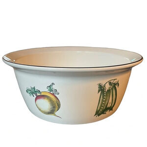 vintage Pfaltzgraff Farmers Market serving bowl with silver edging