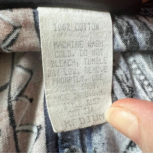 Retro western but make it cropped. This vintage Roughrider by Circle T button-up brings all the desert-road energy with its bold Southwestern print, shiny buttons, and unique tie-back detail. Crochet panels along the sleeves + waist add just the right touch of quirky texture. A true Americana piece, made in the USA — ready for honky tonk nights, rodeo chic fits, or a modern festival spin.