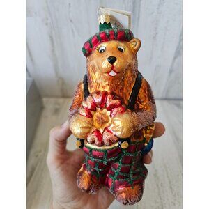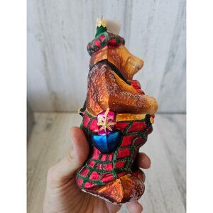 Christopher Radko BEARING HEARTS Glass Teddy Bear Christmas Bear Holding A Wreath Of Hearts