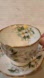 Elegant teacup and saucer set featuring a floral design with gold trim. Perfect for tea time.
