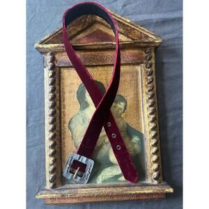 vintage SAINT LAURENT velvet calfskin leather BELT metal jeweled buckle glam s 2