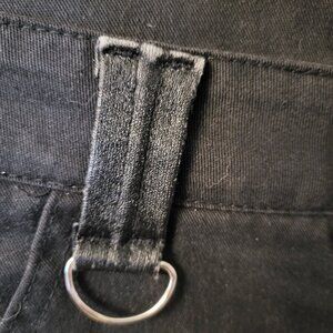 vintage Serious women's sparkly pant. No size tag, so please see photos for fit. Stretchy sparkly black jeans with D ring and zipper accents. There is some wear on the PVC beltloops, see close photos