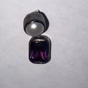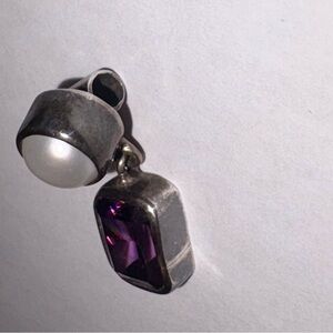 This elegant pendant features a stunning purple gemstone set in a sleek silver frame. Perfect for adding a touch of sophistication to any outfit. Stamped 925