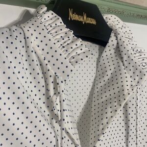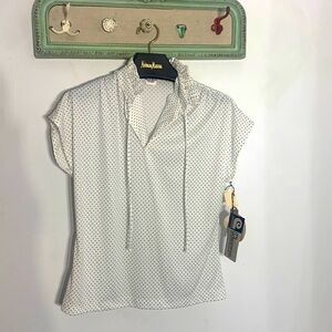 vintage Sleeveless V-neck ruffle collar polkadot blouse new plus size 14 new nwt