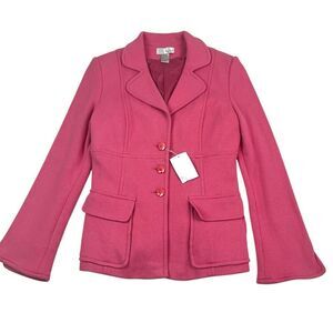 * Spiegel Vtg Ponte Knit Blazer sz 10 Pink Jacket Flower Buttons Y2K Academia