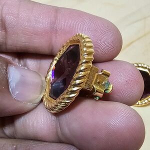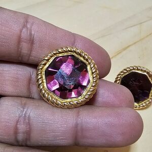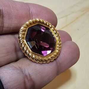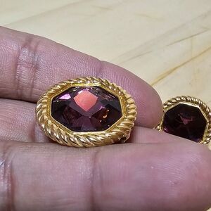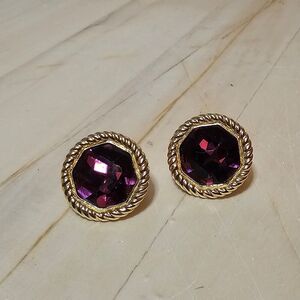 vintage Swarovski clip-on earrings gold-tone twisted rope design surrounding a large faceted octagonal-cut purple crystal 70s - 80s sold as is see pictures for reference