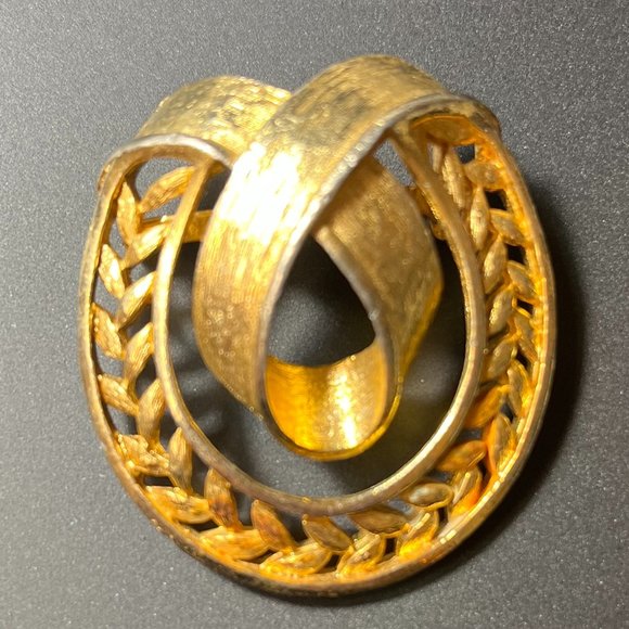 vintage Trifari gold cress brooch pin. 2" x 1.5"