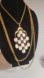 Absolutely amazing statement necklace 3 gold strands extra long amazing lucite beading.