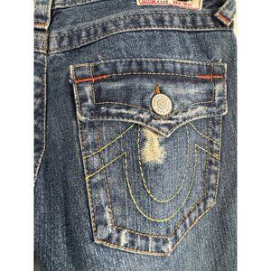 vintage True Religion Women’s Distressed Flare Jeans Size 28 Blue Denim Made In