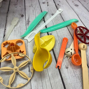 vintage Tupperware assortment of kitchen gadgets and parts