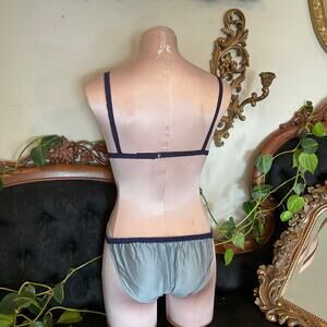 vintage Viva Floral Embroidered Bra & Panty bikini Satin Set Sz 36