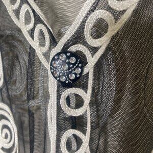 vintage Vivid Importers Button Up Top XL Black Sheer Swirl Embroidery Elegant Ev