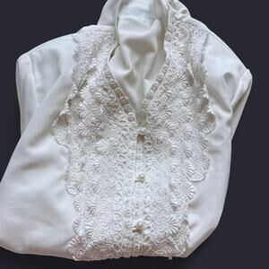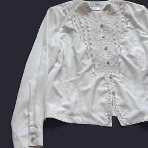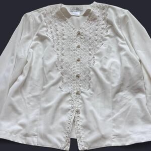 vintage White lace button up blouse sz 14 pearl delicate romantic cottage
