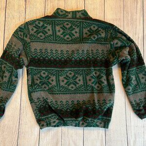 vintage Woolrich size S pattern fleece pullover mock Made in USA green gray