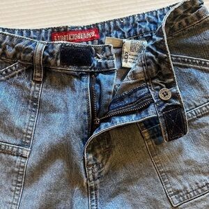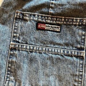 vintage Y2K- Union Bay-size 9 faded denim Jean shorts. Slightly distressed, Two large front pockets. Zipper, button, hook and loop to close. Two large back pockets 100% cotton. See photos for approximate flat measurements.vintage,y2k,