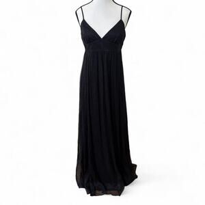 Black chiffon maxi dress with spaghetti straps and sweetheart neckline