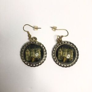 vintage abandoned haunted house round glass earrings halloween steam punk