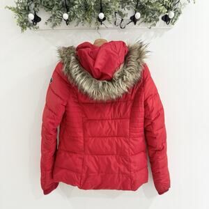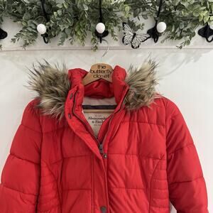 vintage abercrombie and fitch Y2K Fur Lined Red Puffer Coat M Fleece Lined