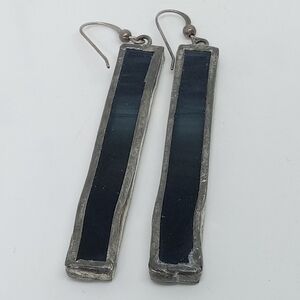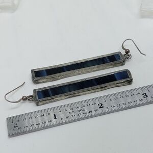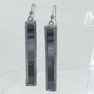 * vintage artisan made Stained Glass long vertical bar shades of blue earrings