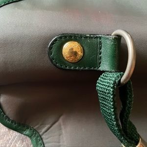Moschino vintage gold Large hunter green handbag canvas strap handle satchel bag
