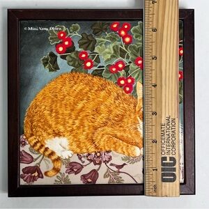 vintage avon mimi vang olsen ceramic tile framed cat art orange tabby trivet