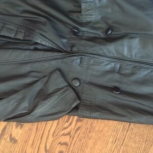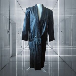 vintage black leather sweeping long dramatic matrix Style maxi trench coat sz 8