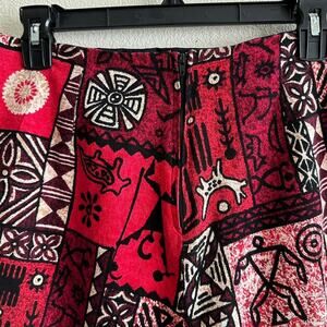 vintage black red native bark cloth print skort