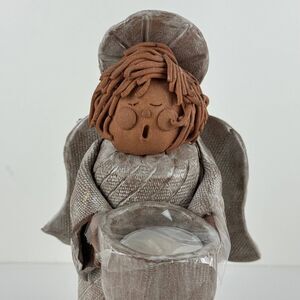 vintage clay pottery candle tealight holder angel choir folkart sculpture figure