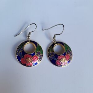 Vintage cloisonne earrings on sterling silver hooks 1.5 in