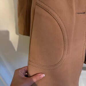 Cool vintage coat with pockets. Interesting stitching and cool buttons. No size listed on the jacket but fits like a small / medium -- I'm a size 8 and this is just slightly too small on me. (Note that the person in the photo is size 2/4)