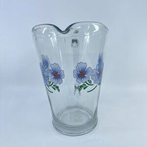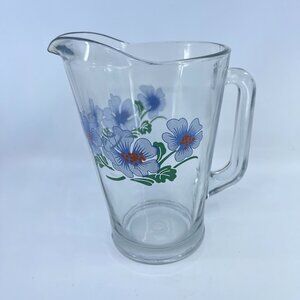 vintage crisa blue poppy glass pitcher with pour spout retro kitchenware