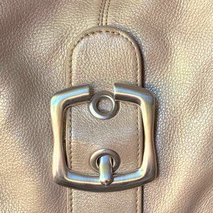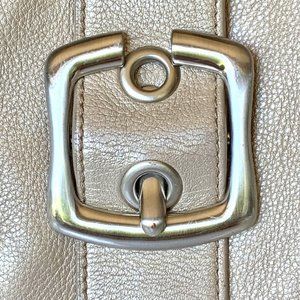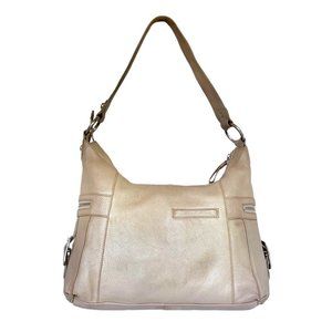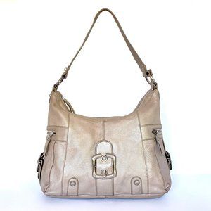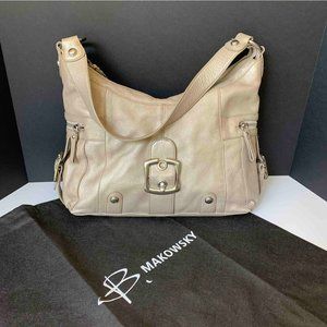 _ vintage designer b. makowski metallic cream/champagne leather hobo bag