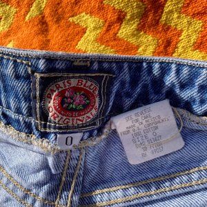 vintage 90s distressed bleach dip denim high waist shorts. medium wash. super soft cotton denim. tag is a size 0. would best fit a. XXS-XS but please see the measurements to ensure a perfect fit. material is 100% cotton. brand is Paris blues jeans. Freshly laundered. Some small stains please see the photos . here to help if you have any questions.