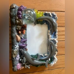 vintage dolphin picture 3D frame Water globe Ceramic Starfish Ocean Seashell 5x3