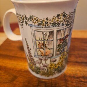 vintage dunoon doorways with dog and cat floral fine bone china made in Japan by sue scullard